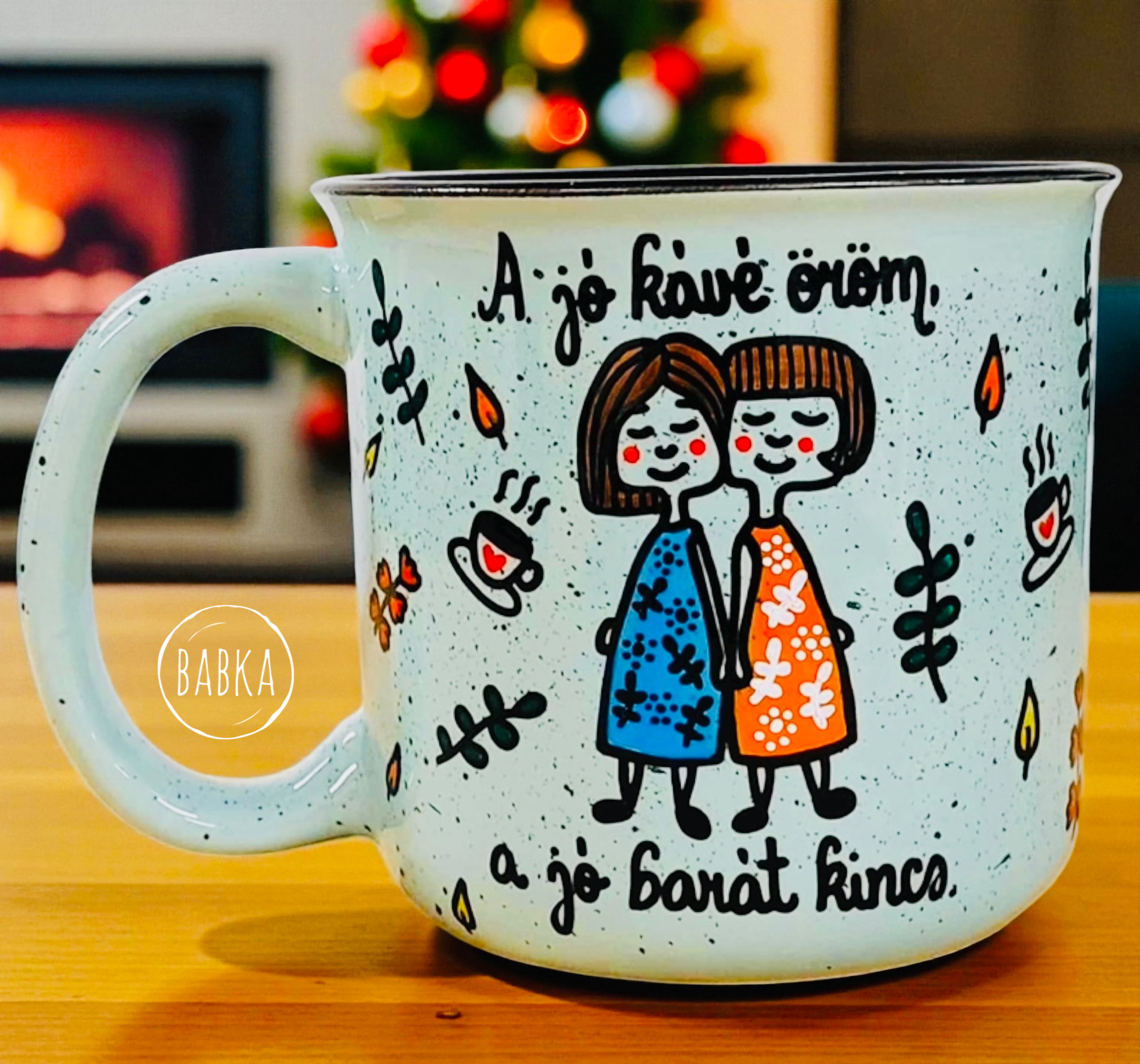 Kézzel festett termék. Egyedi, soha nem készül kettő pontosan egyforma. Néhány megjelölt termék kivételével soha nem használunk sablonokat, minden szabad kézzel zajlik. Kérheted különböző variációkban is, egyedi névre szóló feliratokkal, vagy a minta megváltoztatásával is, de tekinthetsz a termékre inspirációként, és megálmodhatsz egy teljesen rád szabott koncepciót. Több mint 800 saját termékünk van, tehát biztosan tudunk majd segíteni. :) Összeállíthatsz saját szetteket is természetesen. Ha nehezen igazodsz el a rengeteg kerámia és porcelán között, akkor ne érezd magad kellemetlenül, ha írsz nekünk! 😊 Mi is elveszünk néha sok mintában, természetes dolog, ha kérdezni szeretnél. A termékeket kézzel festjük, szárítjuk, hőkezeljük, ami időigényes folyamat, de ennek ellenére a 24 órás expressz kiszállításnak hála a legtöbb esetben 3-4 nap alatt meg is kapod a kiválasztott darabokat. A maximum kiszállítási időnk 10 munkanap, de ez ritkán fordul elő, és általában akkor, ha sok darabból álló teljesen egyedi kivitelezést kérsz. Ha nagyon sietned kell, akkor válaszd az SOS kiszállítást, mint feláras szolgáltatást. Ha SOS kiszállítást kérsz, akkor minden más munkát félreteszünk, és azonnal nekilátunk a tiédnek, hogy 1-3 nap alatt megkapd. Tipp: Ha nagyon sürgős, akkor írj nekünk messengeren, ahol gyorsan egyeztethetjük a részleteket, és igyekszünk segíteni, hogy az ajándékozás jól sikerüljön. A termékekhez kérhetsz extrákat, mint díszcsomagolást, a tányérokhoz fali akasztót vagy állványt (Bögrék esetében, ha az állvány opciót bejelölöd, akkor egy fém akasztó kampót teszünk a csomagba.), üdvözlő kártyát, ami egy egyedileg szövegezhető, tartós alumínium kártya (nem papír). Ha bármilyen probléma lenne a rendeléseddel, akkor írj nekünk mielőbb. Fontos tudnod, hogy soha és semmilyen esetben nem érhet kár nálunk! Írj nekünk emailt a hello@babkamanufaktura.hu email címre, és maximum néhány nap alatt releváns választ adunk. Ha sürgős, akkor pedig válaszd a messengert! Ha nagyobb mennyiséget rendelnél viszonteladásra, rendezvényre, tudunk adni egyedi árajánlatot (min. 20 darab tétel előre kifizetett megrendelésétől). Számos kávézó, cukrászda, esküvő, céges buli lett egy kicsit emelkedettebb a Babka termékeitől. Bár kézenfekvő lenne, hogy emailben jelzed az igényt, mégis válaszd inkább ez esetben is a messengert, mert sokkal dinamikusabban tudunk ott egyeztetni. Figyelj, hogy jelentkezz be az üzenet küldésénél, és ne vendégként írj, mert az elveszhet. Nézz körül az oldalon! Bármilyen kérdés, kérés esetén, írj Babkának az oldalon található messenger ikon segítségével, vagy a megadott egyéb csatornák egyikén. Ne feledd! A Babkával átadott üzenetekre még évekig emlékezni fognak, és érezni fogják, hogy időt is, kreativitást is áldoztál rájuk. Nem csak letudtad a „feladatot” egy sablonos megoldással. Köszönjük, hogy itt vagy! Jó válogatást, tervezést kívánunk!